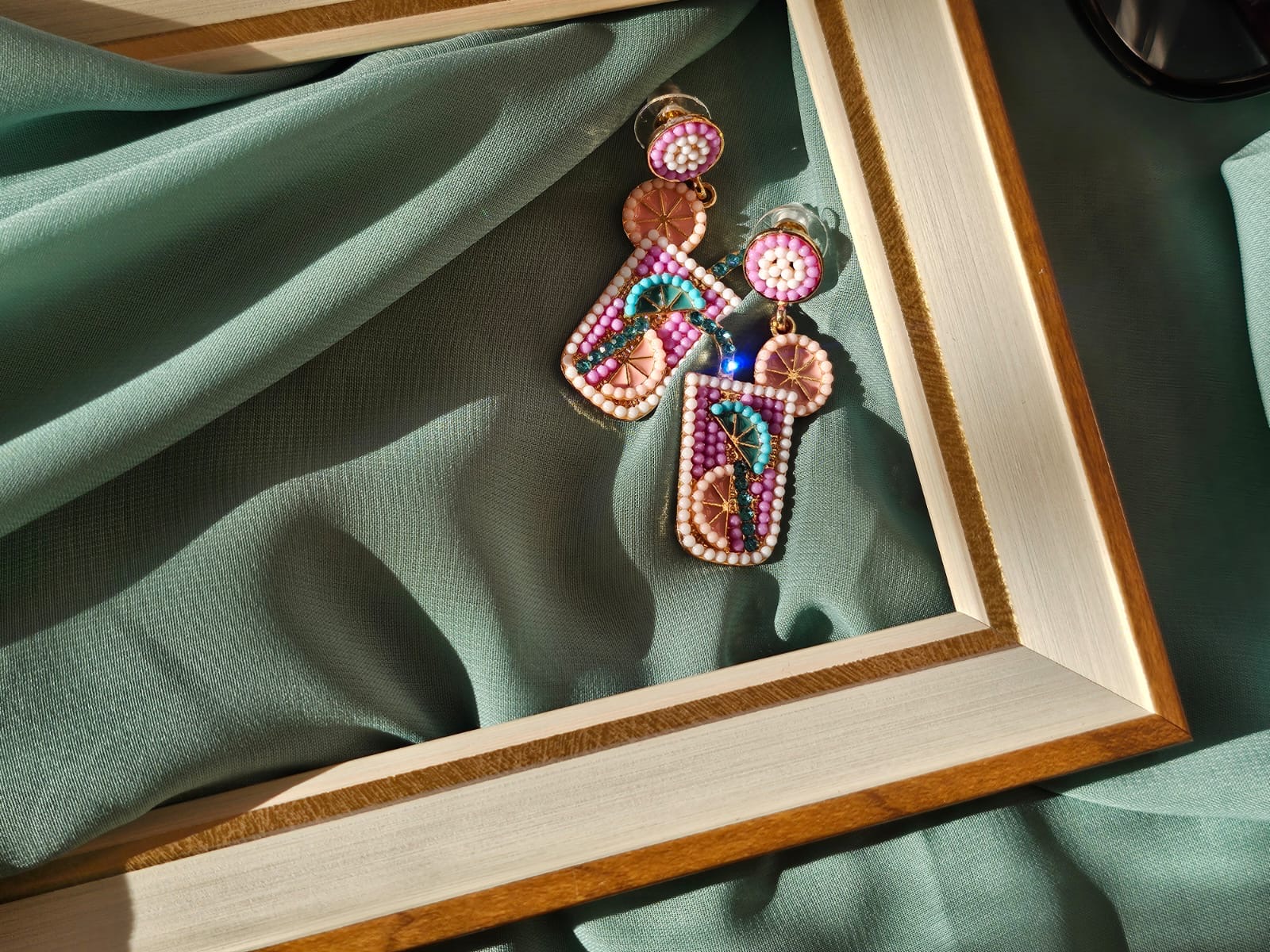 This is a spin on our Drink Me Earrings which feature a now softer and more pastel palette.
